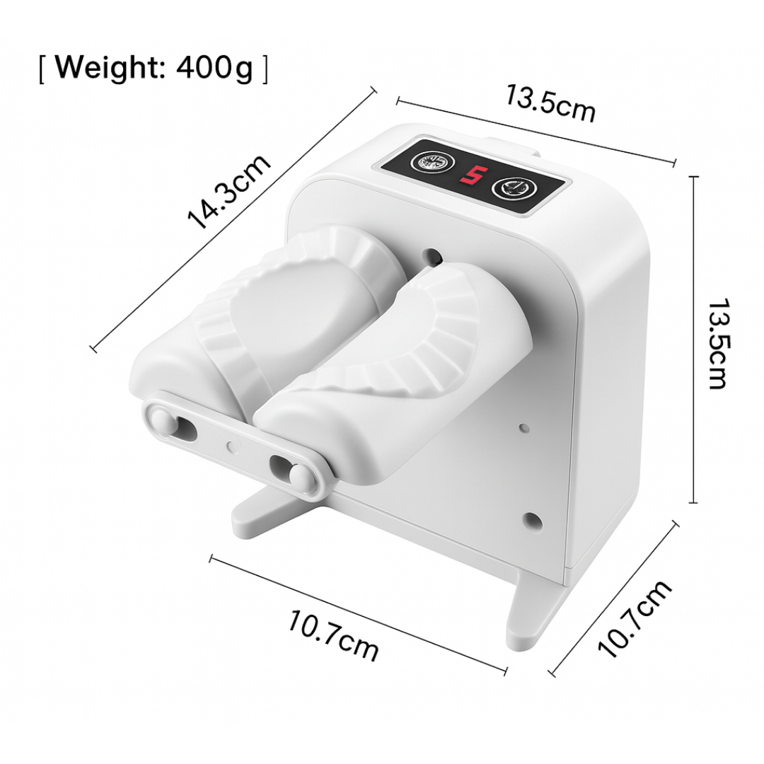Fabricado en plástico resistente, es ideal para uso diario y apto para todo tipo de rellenos: carne, queso, pollo o dulces. Su funcionamiento automático facilita el proceso, incluso para quienes no tienen experiencia en la cocina.